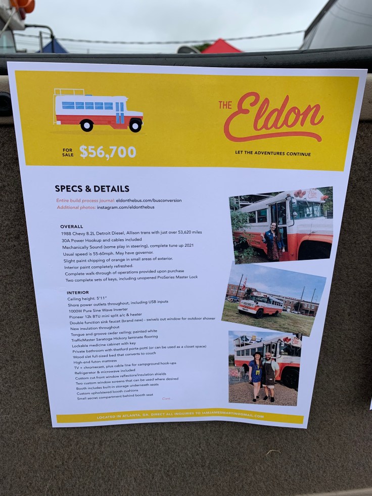 I left Yang alone in the bus to take the 20-minute drive to an old antique mill that was now a consignment shop and restaurant. I wasn’t gone for very long but had a lovely time talking with locals during lunch and shopping. I fueled up the car, got some morning road drinks, and headed back to the bus.
